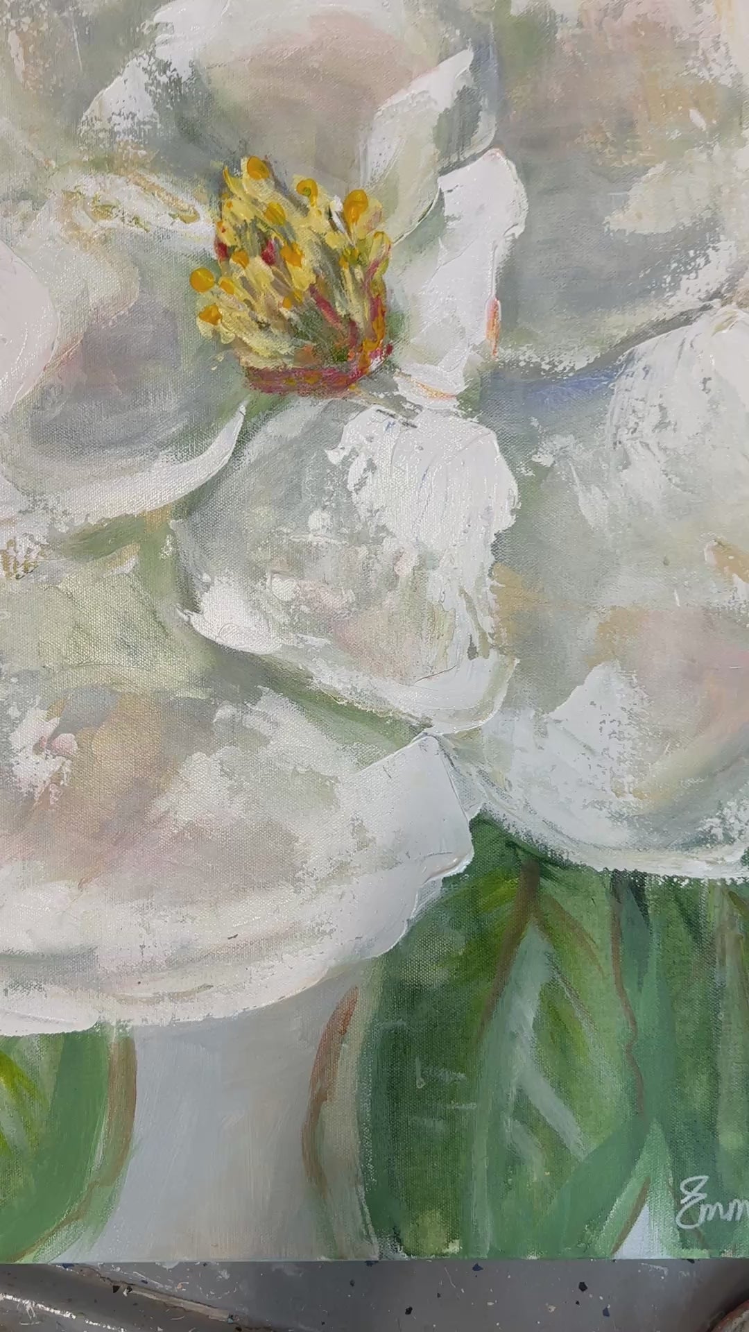 Original painting - A Single Magnolia - 30x24 with acrylic paint brush and palette knife, lots of layers of texture