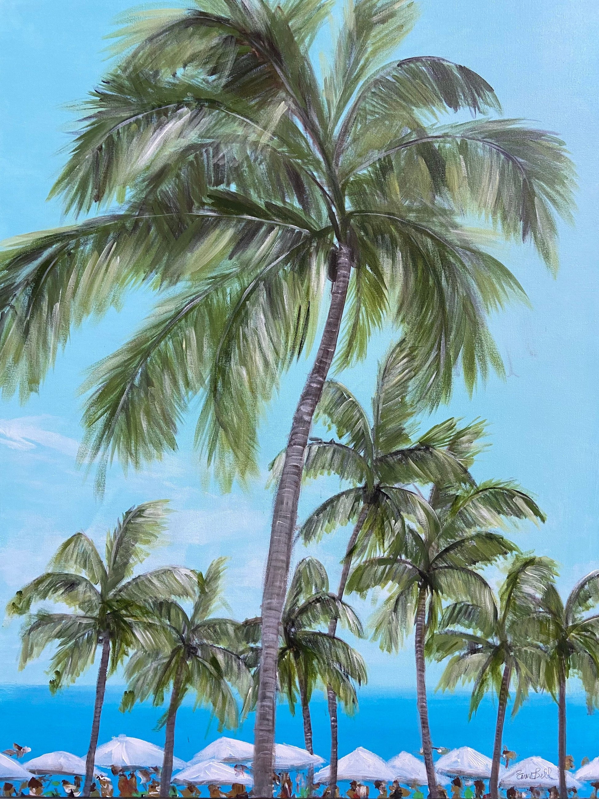 Palm tree painting, beach scape, large original painting 48x36 Beachlife, seascape ‘sky high palms’