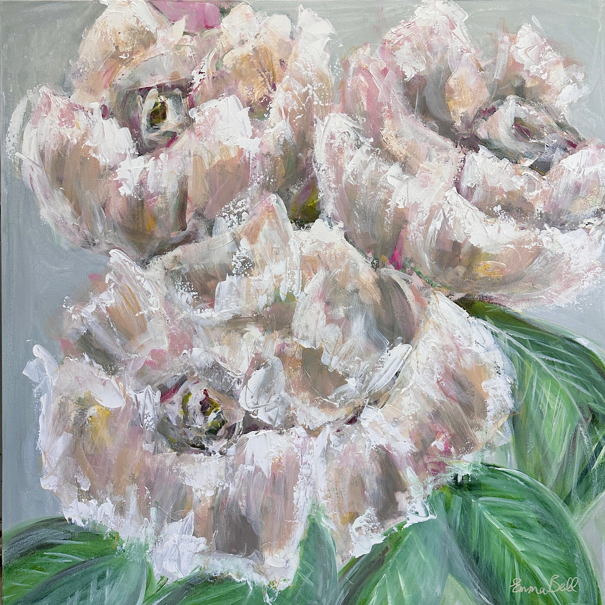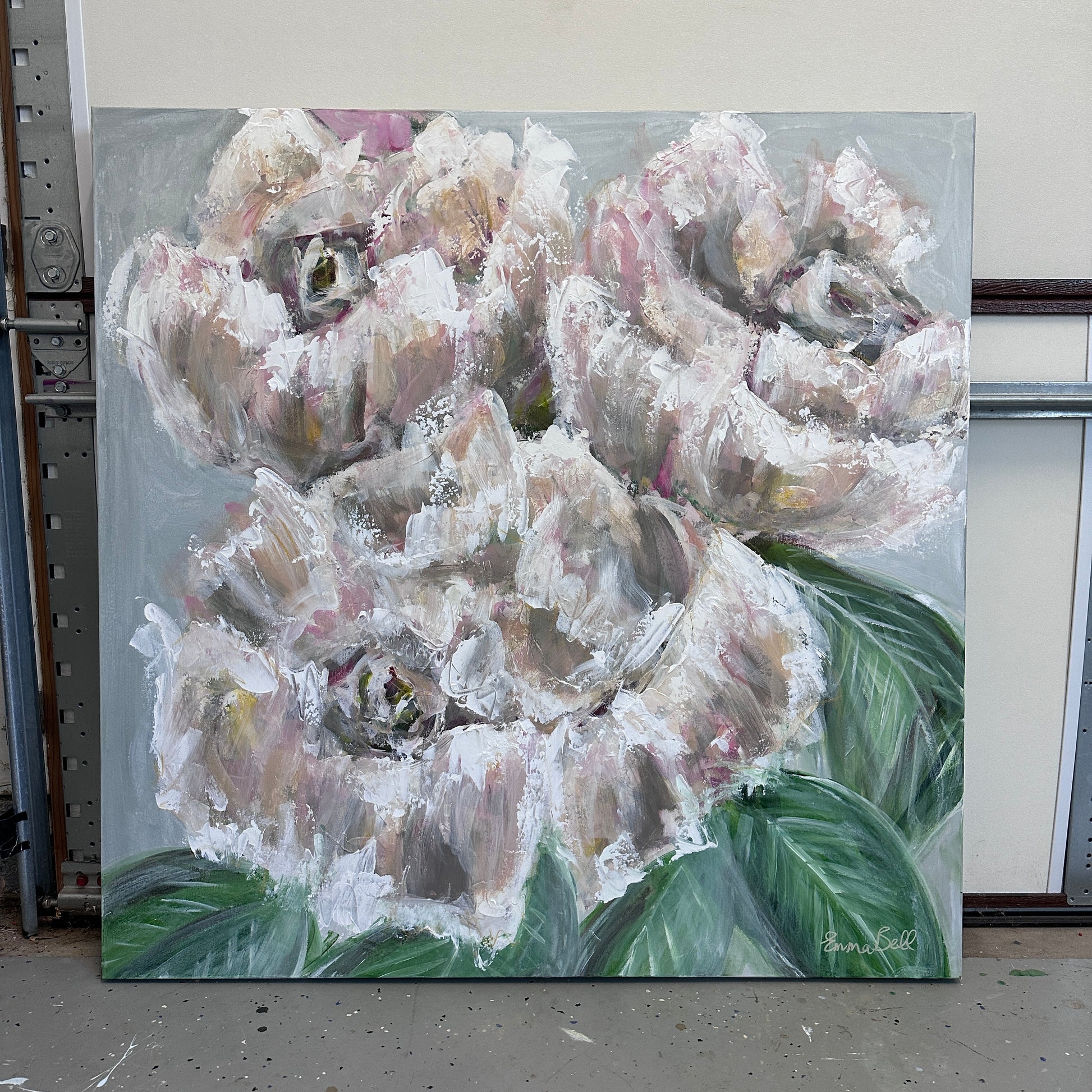 Original painting - peony Bloom - 40x40 with acrylic paint brush and palette knife, lots of layers of texture