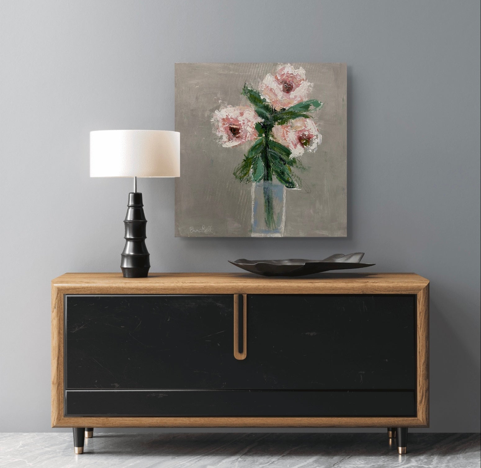 Original painting - Three Peonies - 20x20 with acrylic paint brush and palette knife, lots of layers of texture