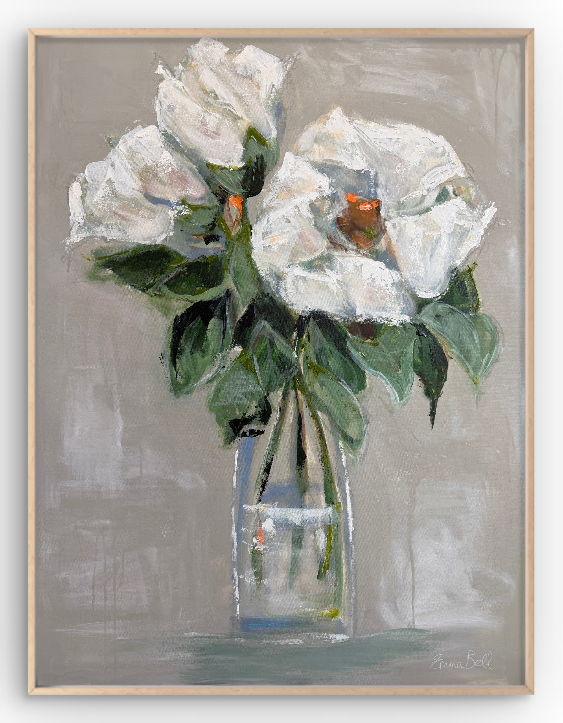 Original painting - White Rose Vase - 48x36 with acrylic paint brush and palette knife, lots of layers of texture